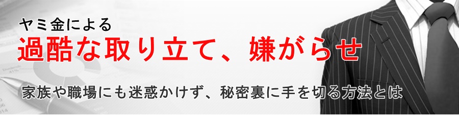 自分自身で交渉を・・・と考える方もいると思いますが、専門家へ依頼すれば取り立て、嫌がらせを即・停止させることができますし、後々のことや親族・職場への迷惑を防止する観点も専門家を使うのがベストでしょう。
